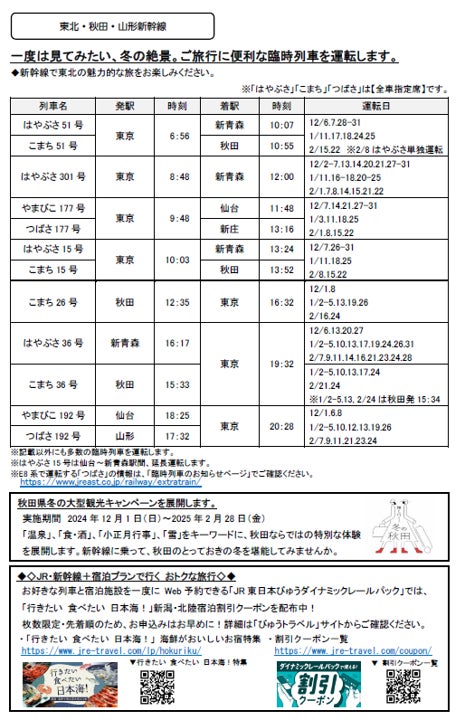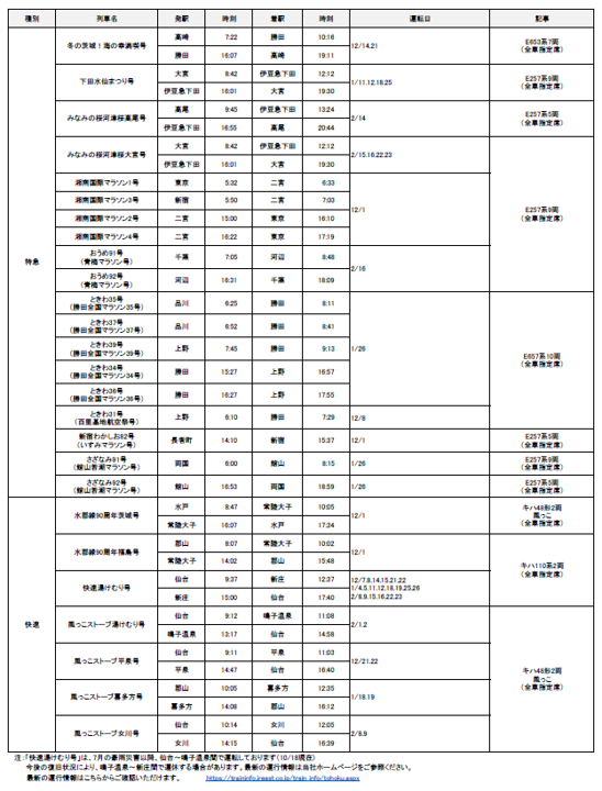 ※本リリースの掲載情報は10月18日(金)時点の情報です。最新の情報はJR東日本ホームページ等でご確認ください。