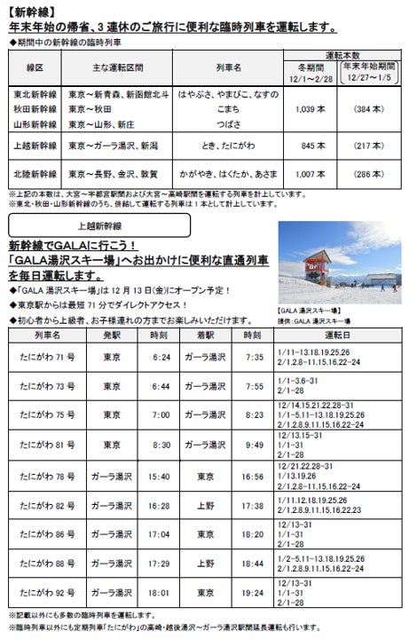 ※E8系で運転する「つばさ」の情報は、「臨時列車のお知らせページ」でご確認ください。