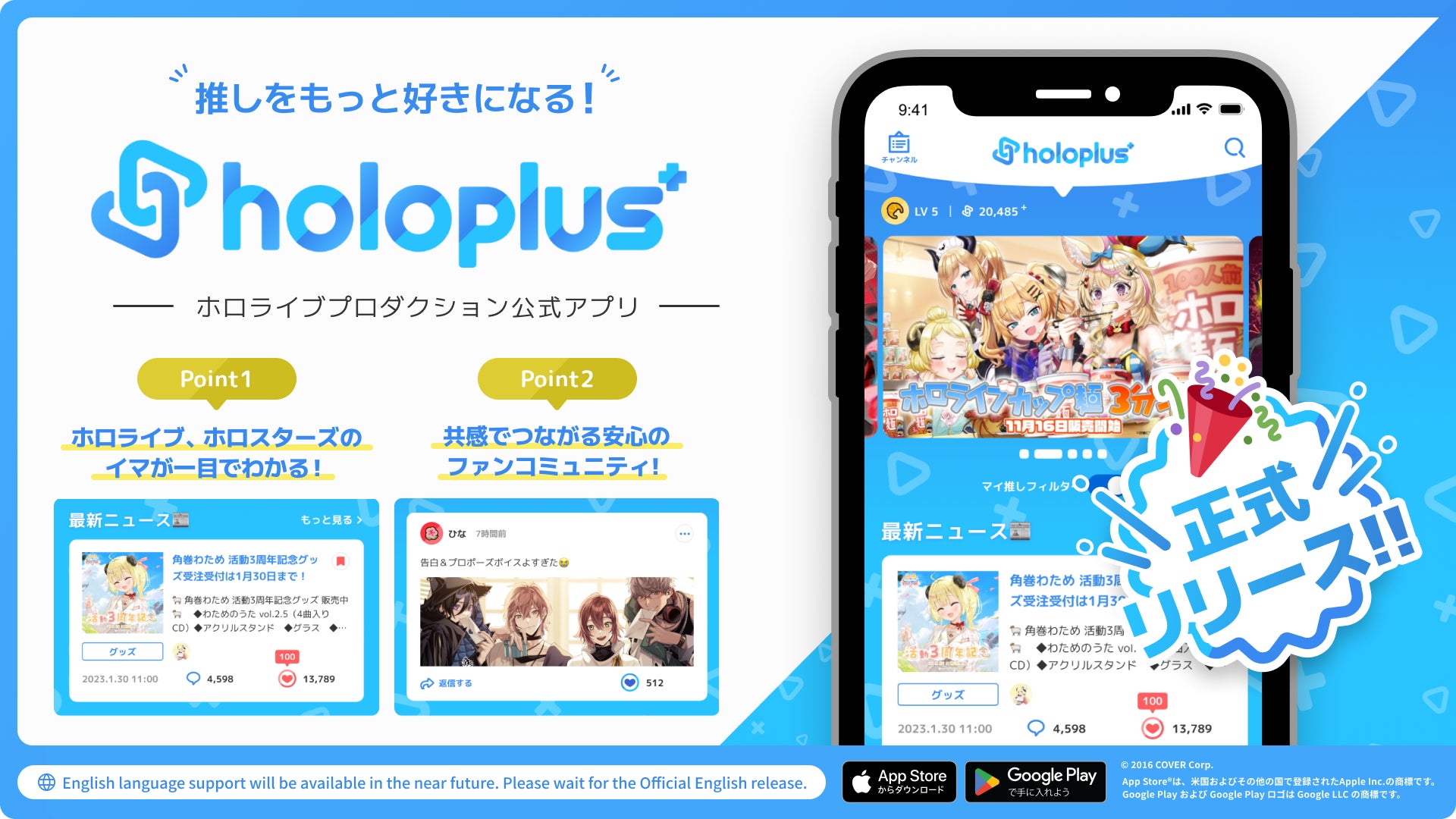 VTuber事務所「ホロライブプロダクション」の”推しをもっと好きになる!”公式アプリ「ホロプラス」が正式リリース!