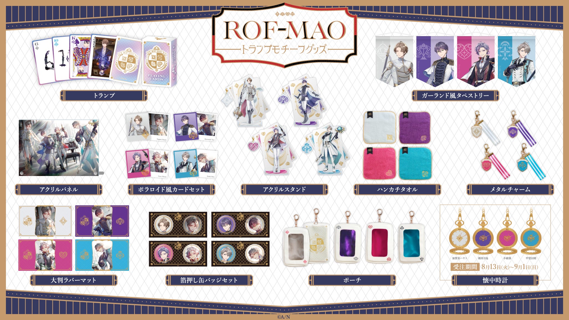 「ROF-MAO トランプモチーフグッズ」は、にじさんじオフィシャルストア(https://shop.nijisanji.jp/)にて2024年8月13日(火)12時から販売を開始いたします。