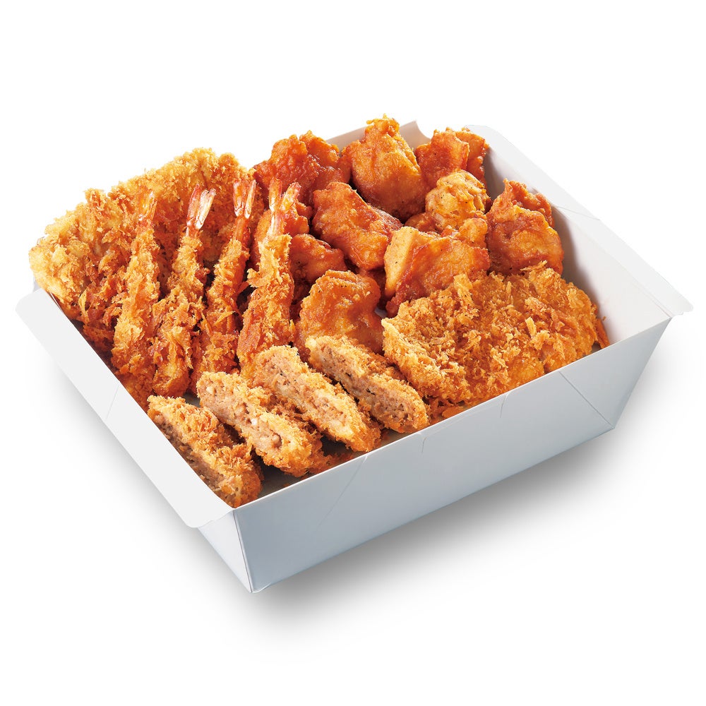 80gロース1枚/チキンカツ1枚/メンチカツ2枚/海老フライ4本/から揚げ8個