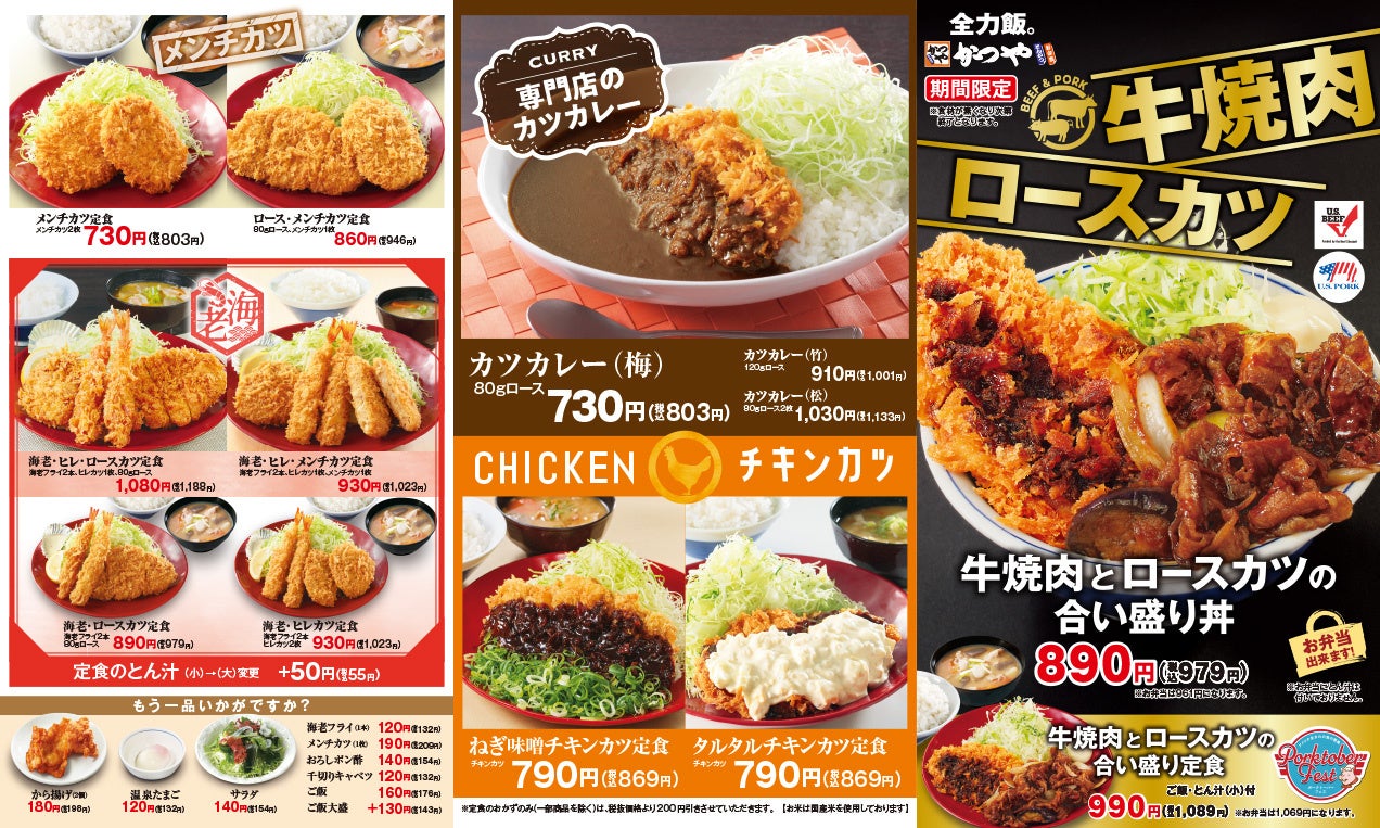 なお、「かつや」では、店内でのお⾷事だけでなくお持ち帰りのお弁当やとん汁、おかずのみでもご利⽤いただけます。