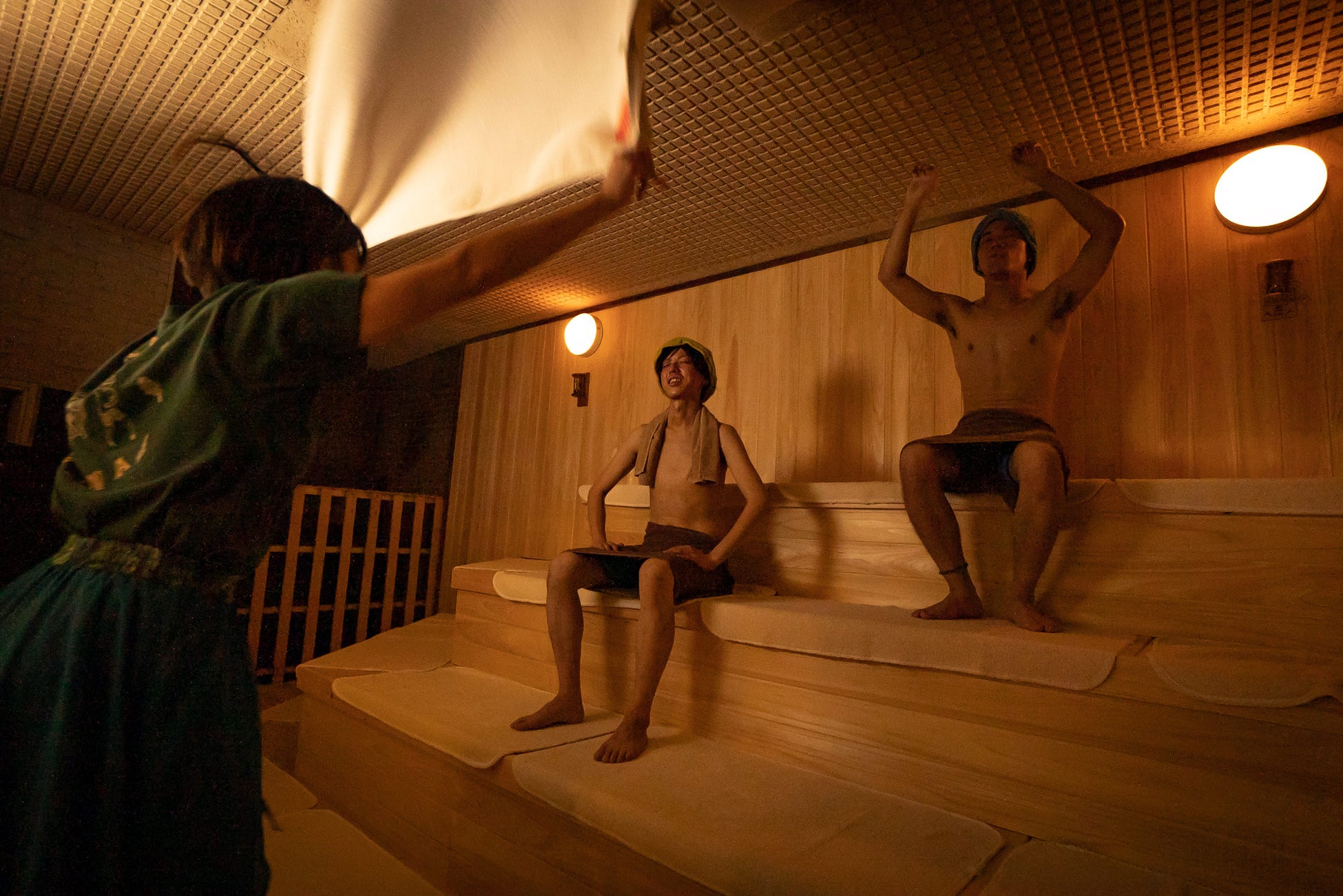 コンセプトは「カラダと心が晴れる庭」。充実のおふろ・サウナ、採れたて野菜たっぷりのごはん、裸足で過ごせる緑豊かなラウンジでお庭にいるようにくつろぎ、心身共に晴れわたる1日をお過ごしいただけます。
