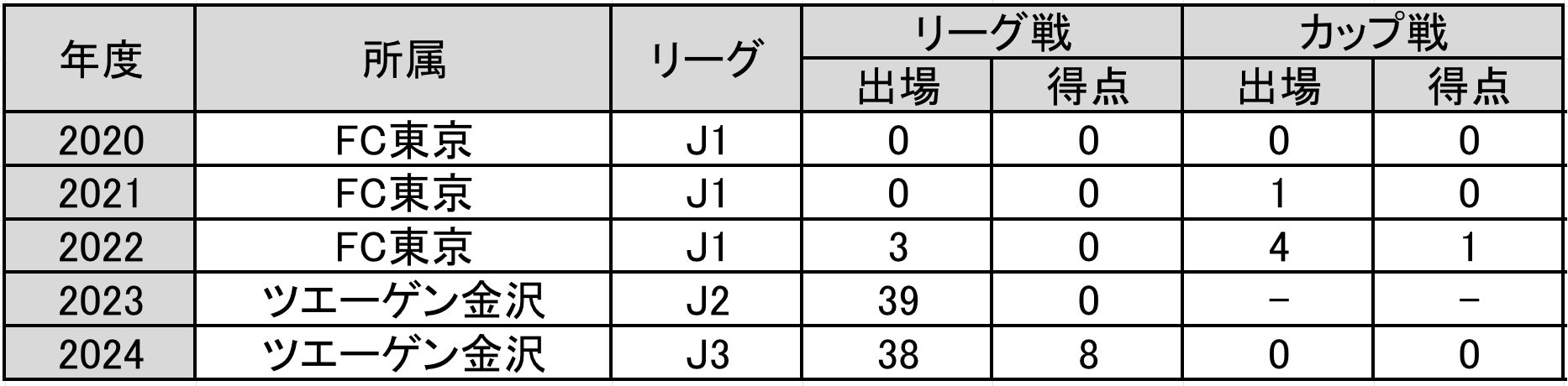 FCトリプレッタ渋谷 - FC東京U-15深川 -FC東京U-18 - FC東京 - ツエーゲン金沢(育成型期限付き)