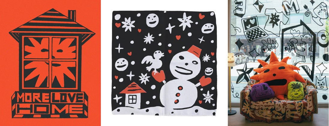 Kentaro OkawaraによるプロダクトブランドMORE LOVEのPOP UP STOREを開催します 。新作のラグや壁掛け時計、マグカップやお皿などの小物を中心としたアイテムが揃います 。また、今回のクリスマスフェアのメインビジュアルで制作したハンカチなどのアイテムも2店舗限定で発売します 。