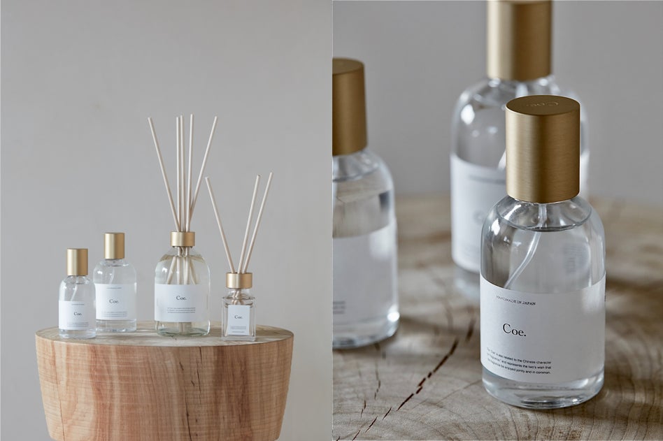 真鍮や木材、香料など、国産の高品質な材料を用いて製作を行うフレグランスブランド「Coe.」。スタイリッシュでシンプルなデザインは場所を選ばず、ホテルライクな装いを演出します。ネイチャー・ホテル・日本の3シリーズで展開されるディフューザーとルームスプレーをご紹介します。そのほか銀座 蔦屋書店では、クリスマスに合わせてフレグランスストーンがセットとなったギフトボックスも販売します。