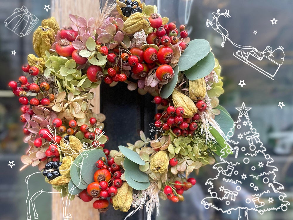 木の実やドライフラワーを使用した自然の温もりを感じるようなブーケやリース、きつねやウサギなど森の動物たちがモチーフとなった可愛らしいクッションやバッグ、いくつも集めたくなるハンカチやスノードームなどのアイテムを展開します。
