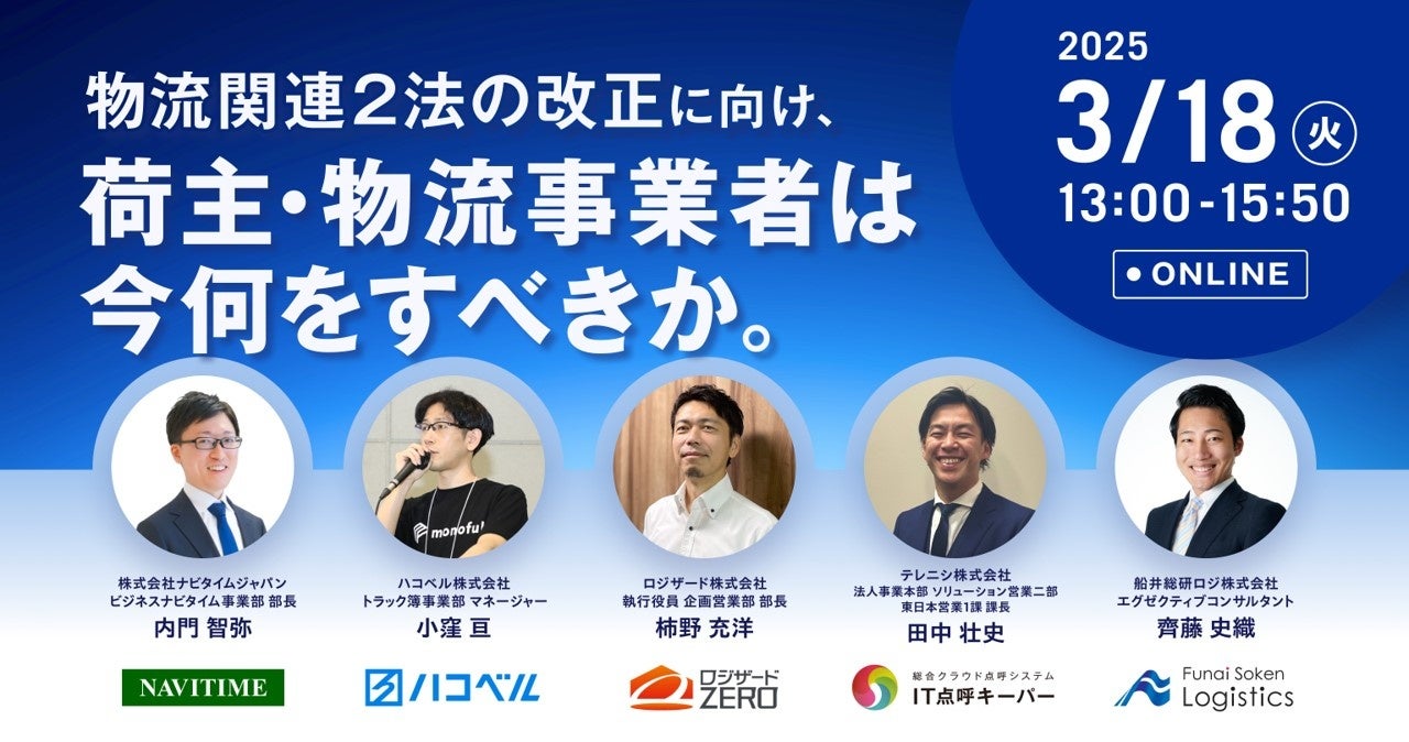 「物流関連2法の改正に向け、荷主・物流事業者は今何をすべきか(主催:株式会社ナビタイムジャパン様)」に船井総研ロジの経営コンサルタントが登壇|2025年3月18日(火)開催