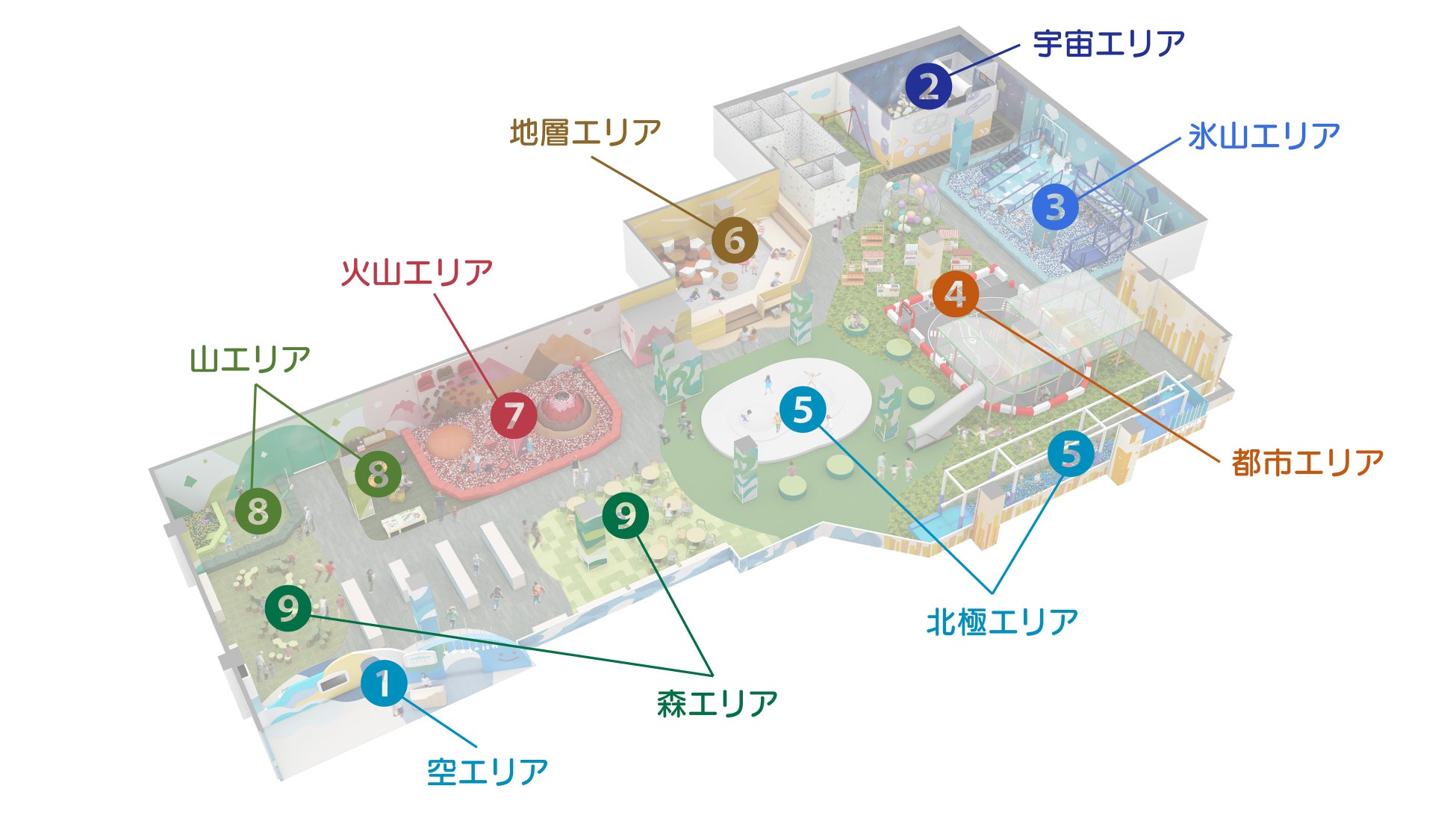 ●ちきゅうのにわの9つのエリアと地球の面白さに満ちた遊びのコンテンツ