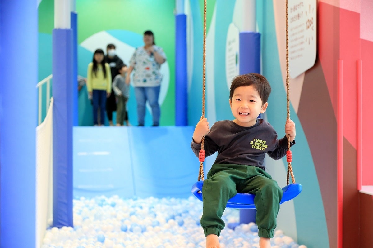 フラワーショップ、スーパーマーケット、アイスクリームショップなど本格的ななりきり遊びができるコーナーで、子どもたちの想像力や表現力が養われます。サーキットコーナーでは三輪車など乗り物のおもちゃに乗って遊ぶことができます。ふわふわ漂う風船が楽しい遊具「ふわふわ風船ドーム」も大人気です。