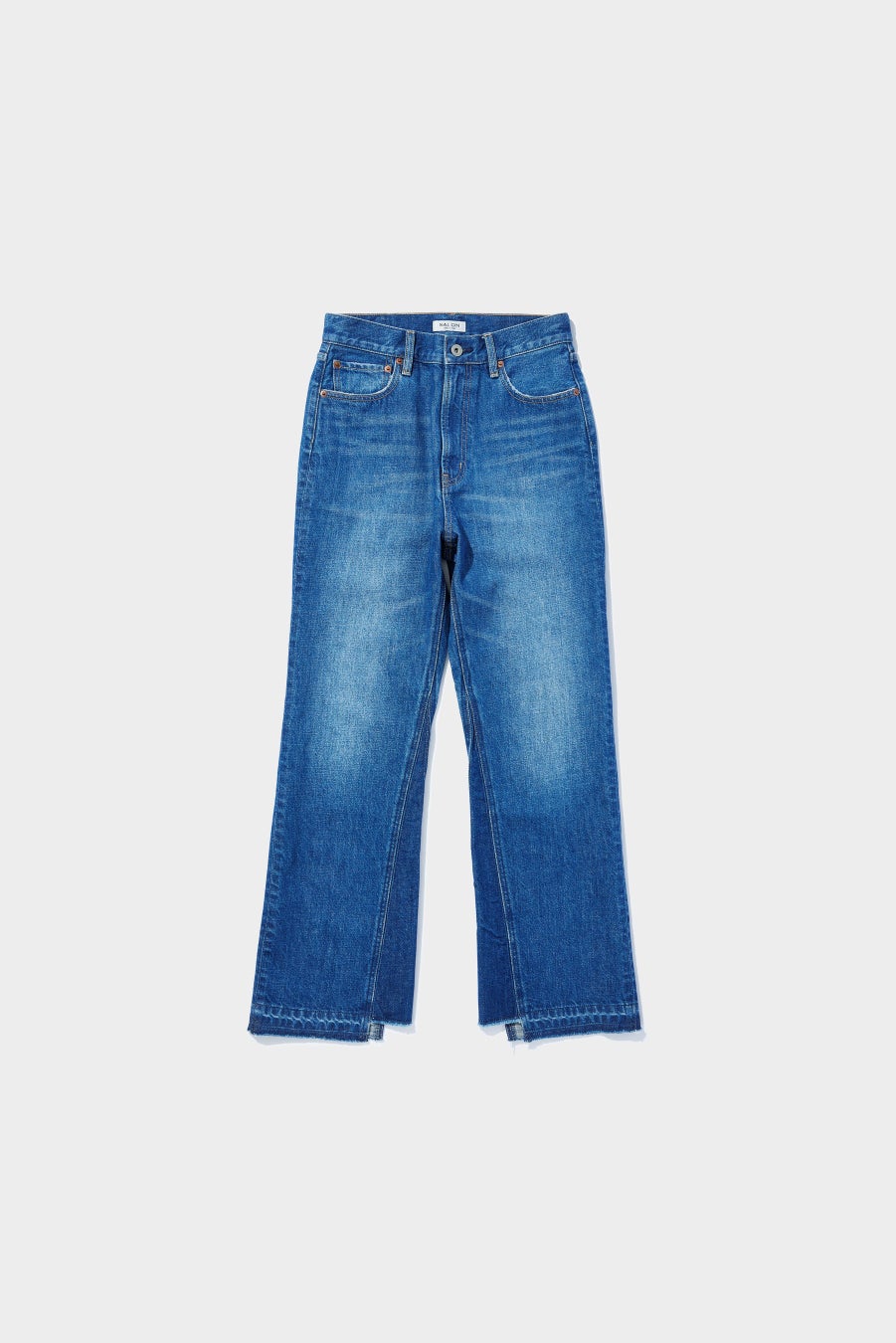 メンズライクな5ポケットデニムをイメージ、マニッシュなシルエットとボリューム感のあるシルエット、美脚を追求。メリハリのある、こだわりのヴィンテージ加工が特徴。