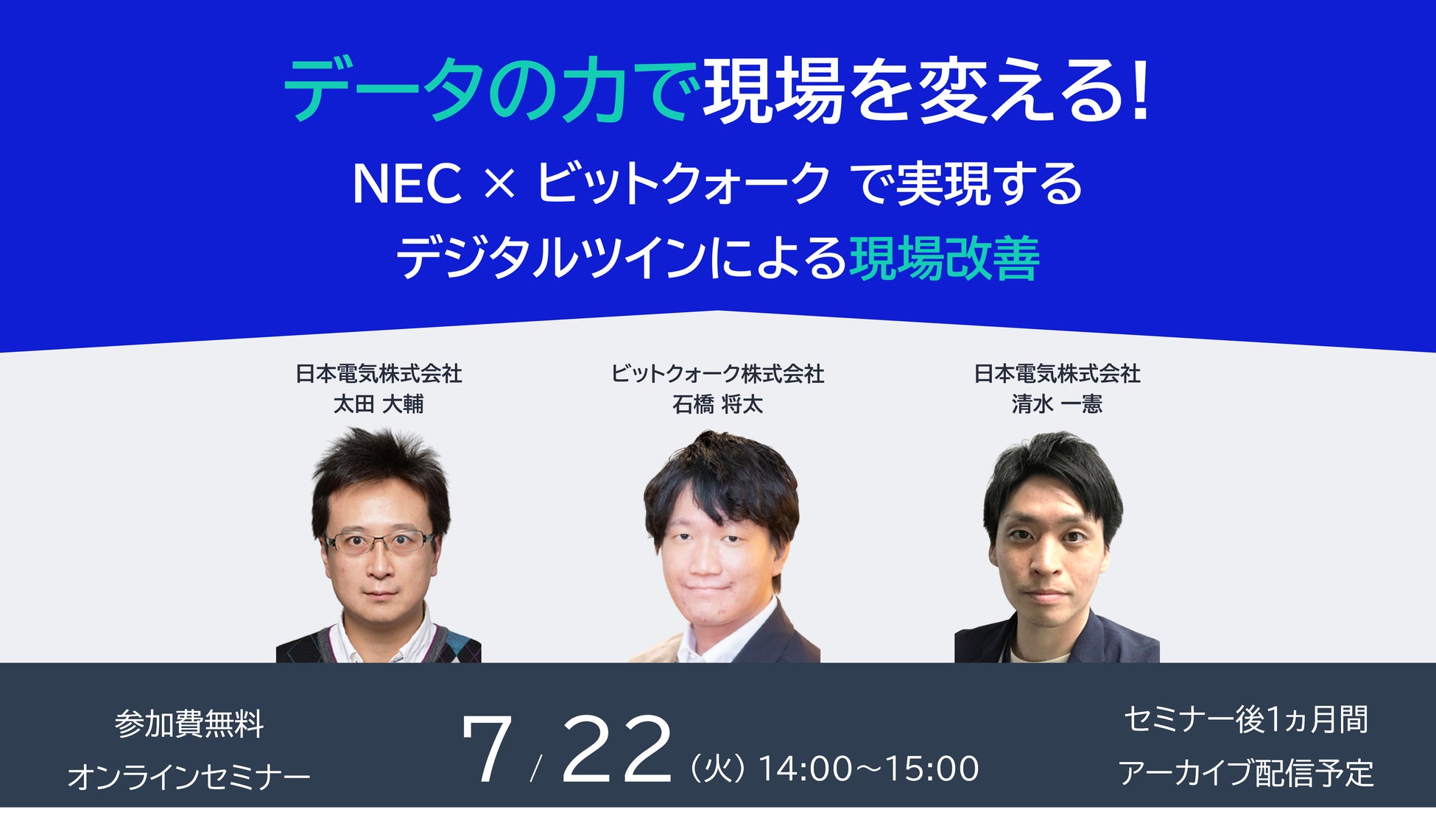 NEC、ビットクォークとデジタルツインによる現場改善ウェブセミナーを7/22(火)に開催