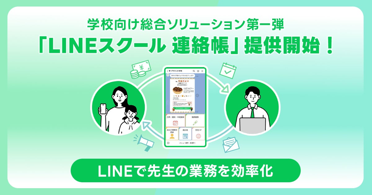 LINEヤフー株式会社(以下、LINEヤフー)は、学校向け総合ソリューション「LINEスクール」を開始します。その第一弾として、学校と保護者の連絡が「LINE公式アカウント」を通じて行える「LINEスクール 連絡帳 (フリープラン/ベーシックプラン)」を、エースチャイルド株式会社(本社:東京都港区、代表取締役CEO:西谷 雅史)と連携して、本日より正式提供を開始します。