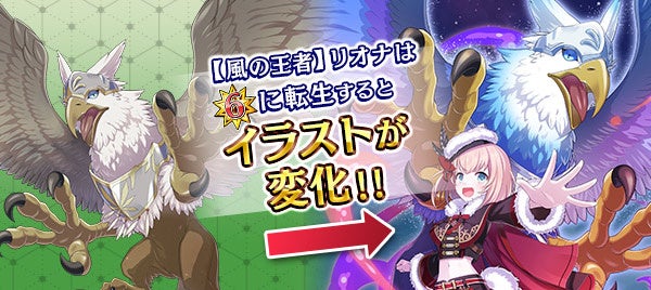 「【風の王者】リオナ」は、★6に転生するとイラストが変化します。