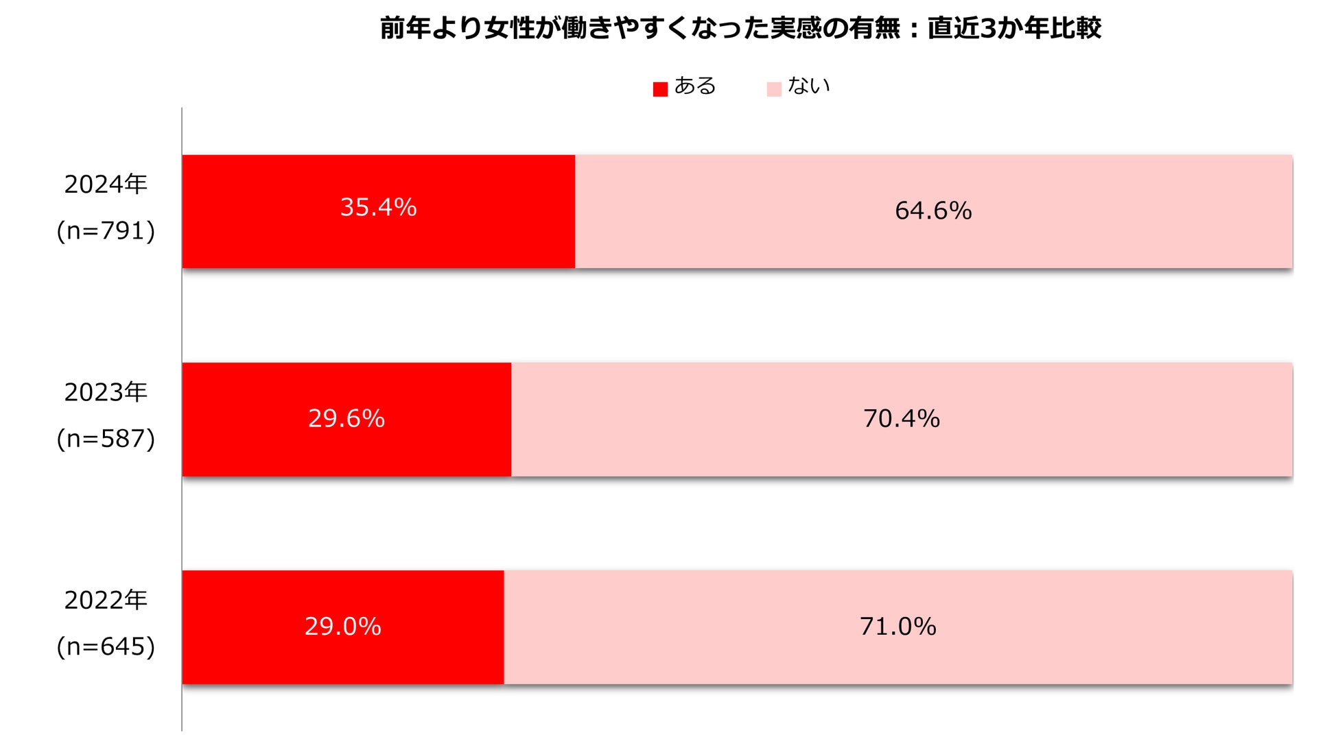 1.2024年を振り返り、女性が働きやすくなった実感「ある」35.4%/3か年比較