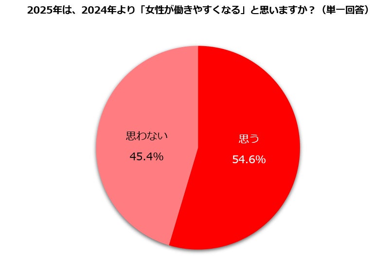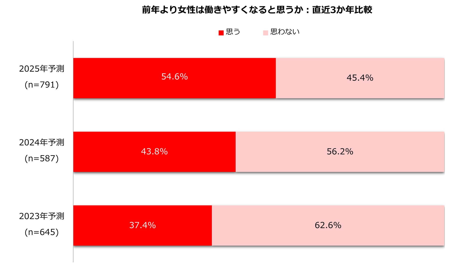 2025年の女性が働く環境「働きやすくなる」54.6%/働きやすくなった実感が3年連続上昇