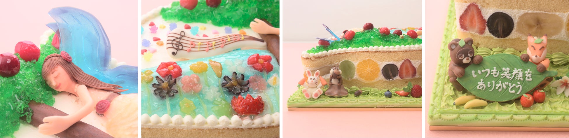 おじいさん、おばあさんの好きなものがふんだんに使われていて、麗奈さんのやさしさが伝わると同時に、いつもかわいがってもらっている光景が目に浮かびました。穏やかな表情の妖精が登場することで、物語がうまれ、まさに夢の世界を描いたケーキでした。