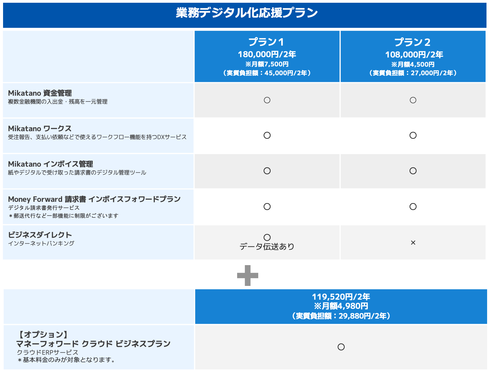 また、「導入・活用サポートプラン」は、マネーフォワードとパーソルが連携して提供する、ITツール導入、活用に関するサポート業務を含むパッケージプランです。初期設定や従業員全体向けの説明会開催など、ITツールの活用目的や状況に応じて3つのプランから選択可能です。