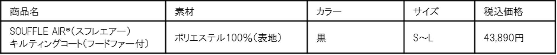『SOUFFLE AIR(スフレエアー®)キルティングコート(フードファー付)』参考資料