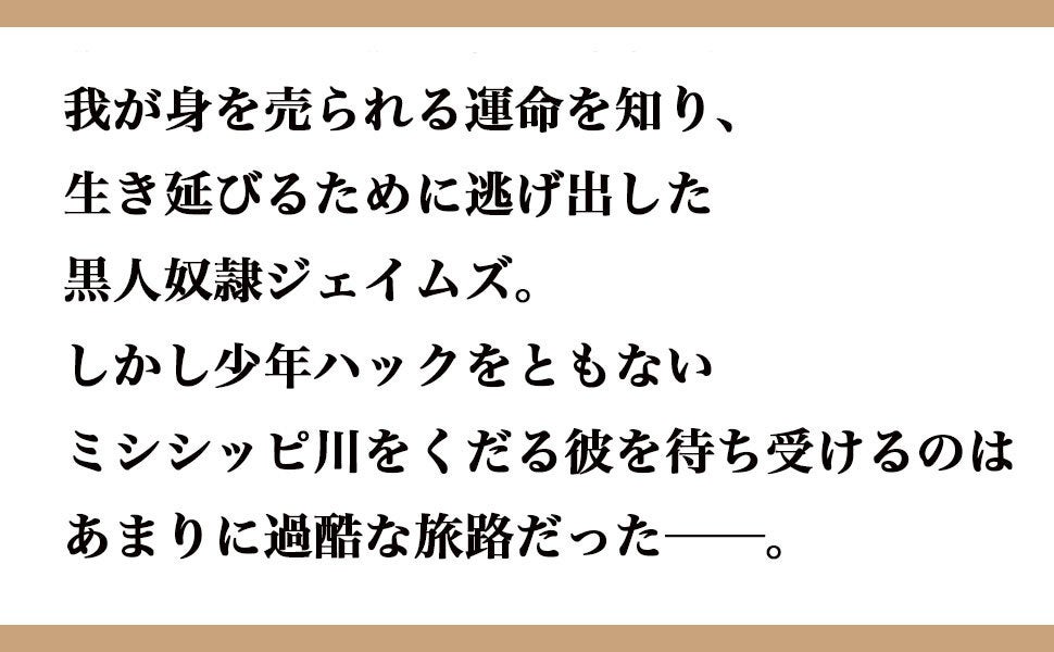 本書は、現代アメリカの神話ともいうべき『ハックルベリー・フィン』の物語を、黒人奴隷ジムの目から衝撃的な形で語り直しました。