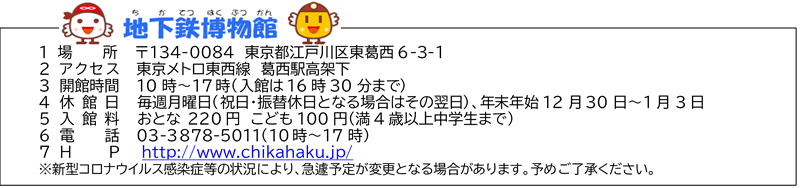 東京地下鉄株式会社(本社:東京都台東区 社長:山村 明義)では、公益財団法人メトロ文化財団(会長:奥 義光)が運営する地下鉄博物館において、2022年12月6日(火)~2023年3月12日(日)にかけて開催する特別展「地下鉄開通95周年 ちかてつふしぎ展~銀座線・地下鉄の原点からたどる謎・不思議~」に協力します。