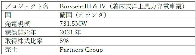 初号案件として、蘭国における731.5MW規模の洋上風力発電資産*2の株式5%を取得する取引契約を締結*3しました。