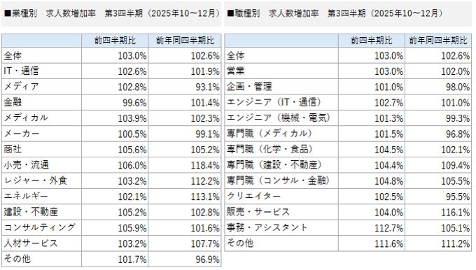 【求人数増加率(業種別・職種別)/2025年 第3四半期(10~12月)】