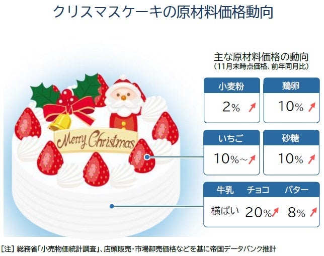 帝国データバンクは、予約販売が本格化する2024年冬シーズンの「クリスマスケーキ」価格について、調査分析を行った。