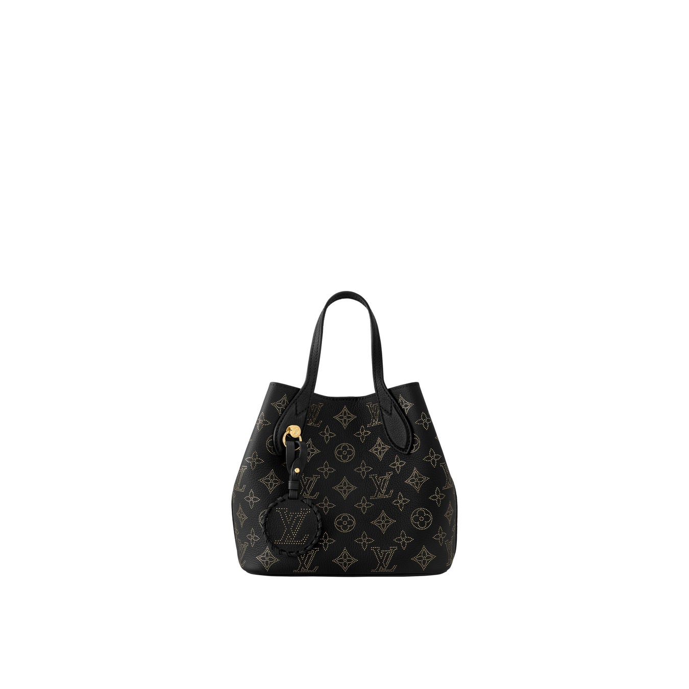 マヒナ・レザーで仕立てた「ブロッサム PM」。スタッズにオーバープリントすることで、モノグラム・フラワー モチーフとLV シグネチャーにさりげない立体感を演出しました。内側のファスナー付きポーチは、取外して単体でもご使用いただけます。
