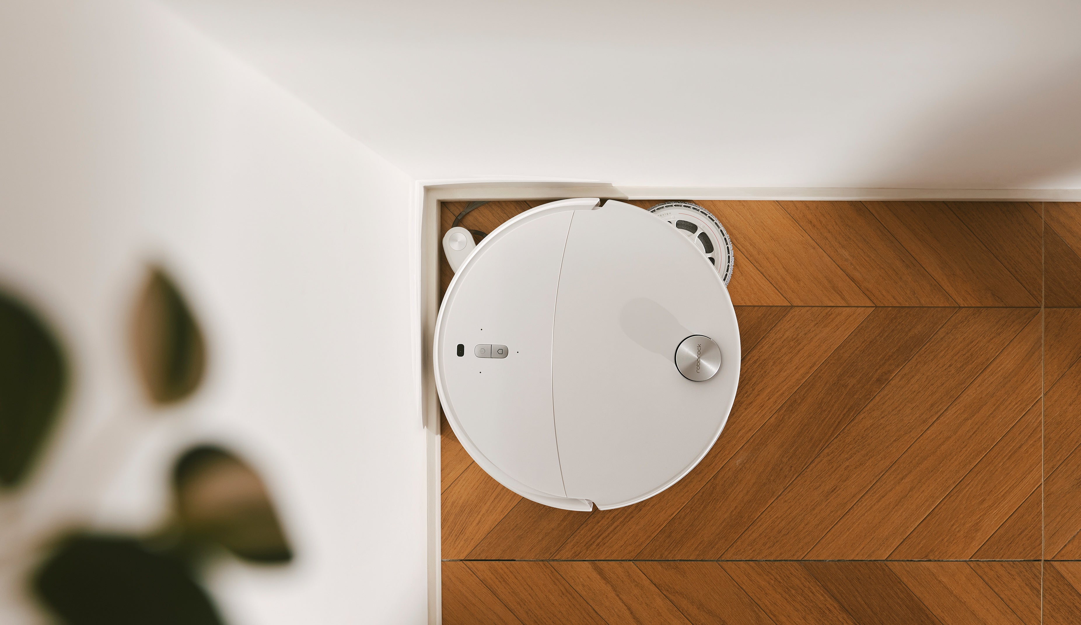 四隅を検知して自動で伸びるサイドブラシが、届きにくい隅のゴミをしっかりかき出し、吸引します。四隅のカバー率は100%※6を実現。さらに、壁際を検知すると水拭きモップが壁際まで近づき、隅々までキレイに磨き上げます。また、弧状デザインのサイドブラシとらせん状で二つに分かれたメインブラシが髪の毛やペットの毛をからめることなく、吸引します。どちらのブラシも毛のからまり度0%※7を実現しています。