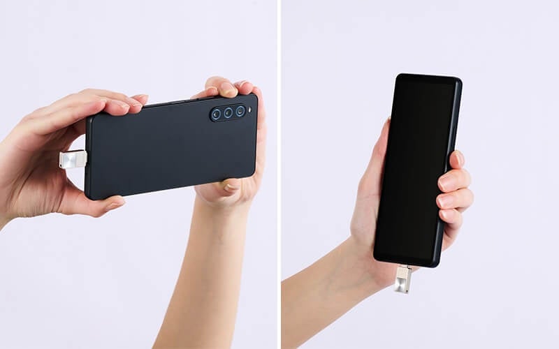 スマートフォンケースをつけたまま使える、USB Type-Cコネクター搭載のUSBメモリー