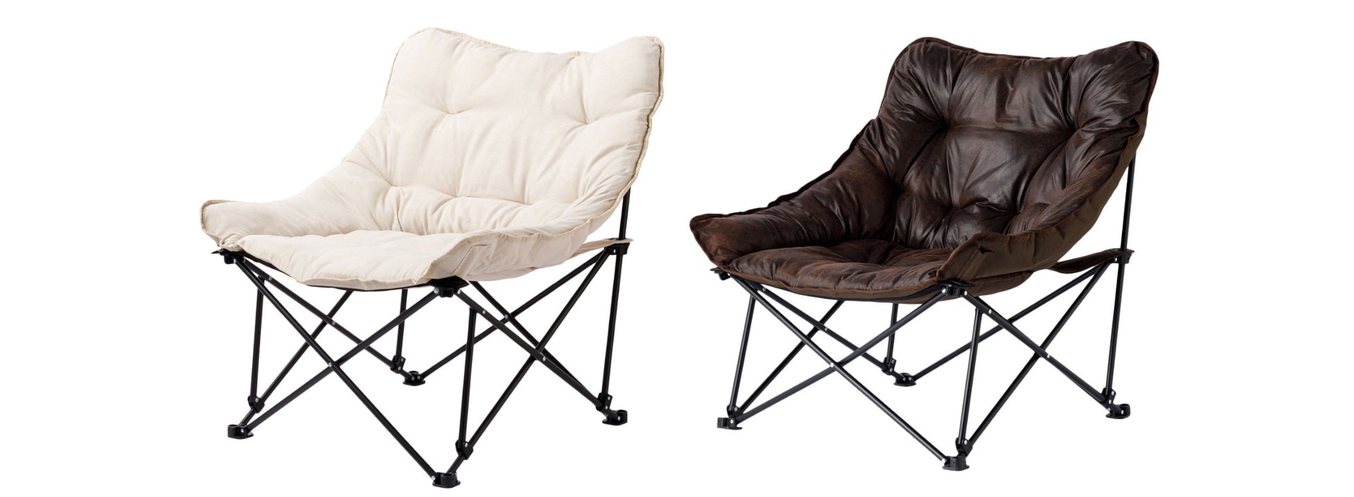 ニトリのバタフライチェアは折りたたみができて軽いので、お部屋の中から外へ気軽に持ち運びできます。ソファのような座り心地で多くのお客様からご好評をいただいております。