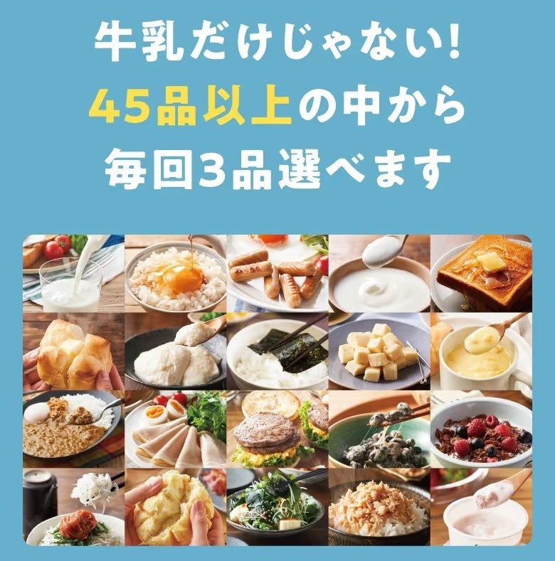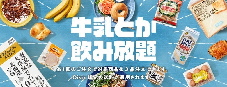 2025年1月から一部メーカーで食パンの値上がりが予定されているなど、引き続きの物価高で日々食卓にあがる日配品も値上がりをする状況が続いています。「牛乳とか飲み放題」は2019年6月から展開している、Oisix定期会員限定の定額オプションサービスで、牛乳や食パン、卵や納豆、豆腐など、常備したい定番商品45品以上の中から、一回の注文につき3品までお選びいただけます。「牛乳とか飲み放題」の月額料金は1,598円(税込)、お届けの頻度を隔週に登録されている場合は950円(税込)で、1リットルの牛乳を毎週3本お選びいただく場合は1本あたり133円(税込)となります。急な値上がりなど家計に負担が大きい物価高の状況下でも、安定した価格で日配品を購入できるサービスとしてご家庭から支持をいただいています。