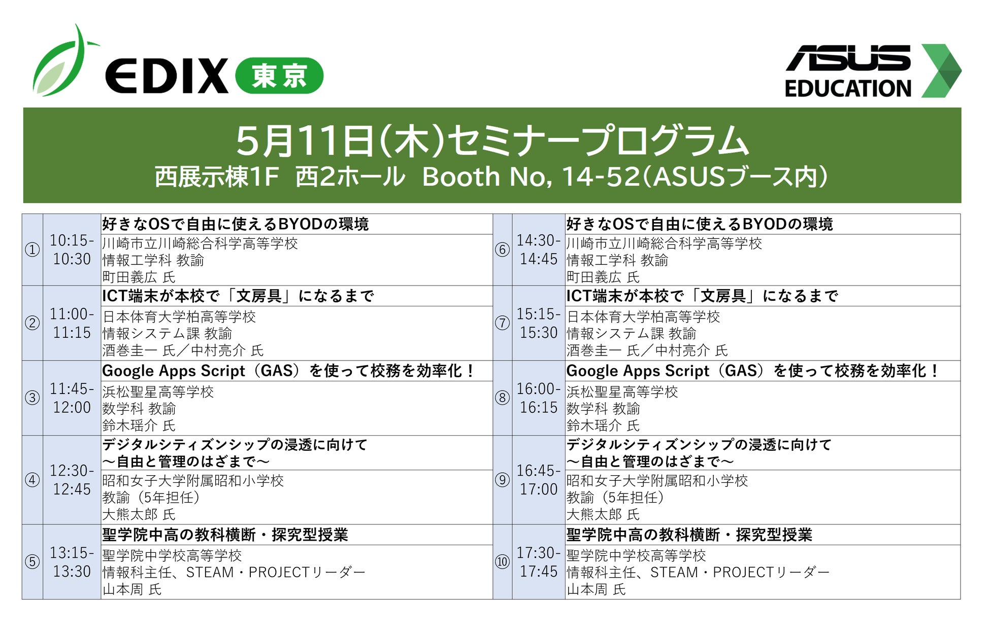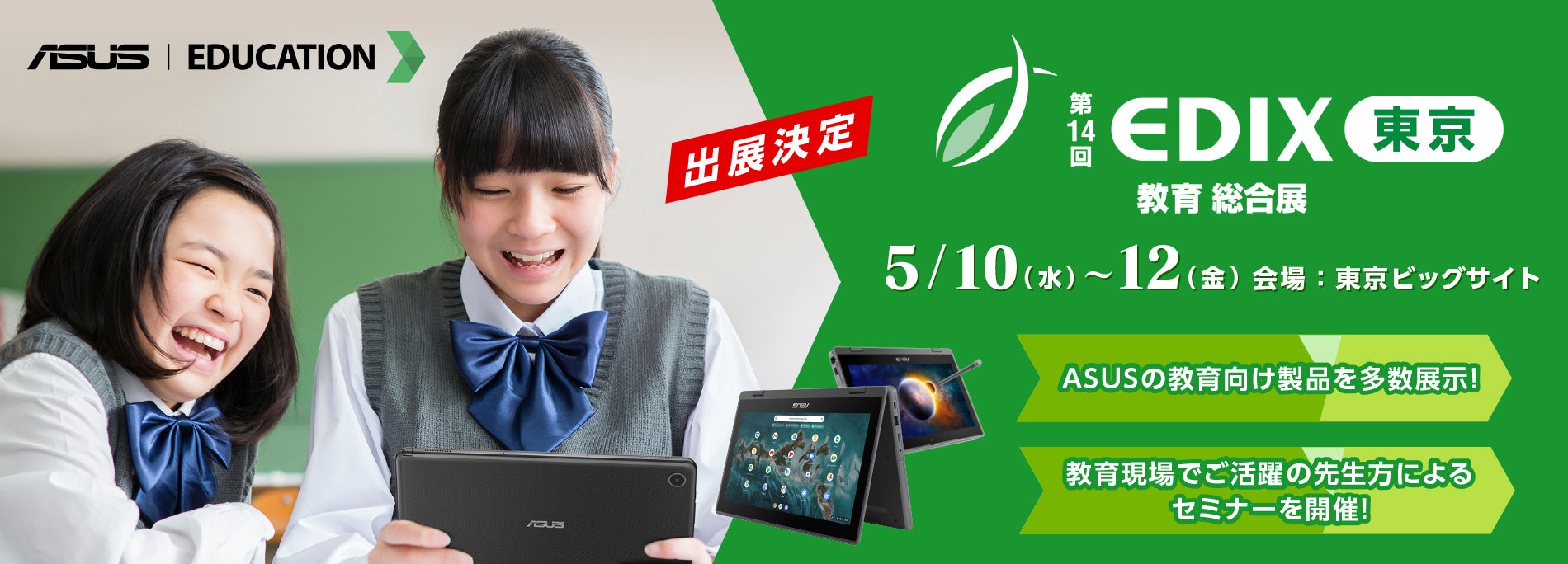ASUS JAPAN株式会社は、5月10日(水)~12日(金)の3日間、RX Japan株式会社主催の、国内最大級の教育総合イベント「EDIX東京」にASUS としては初となる単独出展することを発表しました。