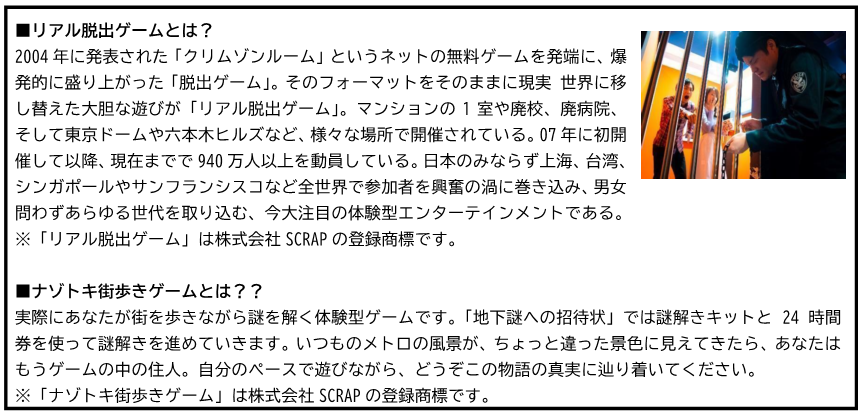 「地下謎への招待状2014REVIVAL」の最新情報は以下URLよりご覧ください。