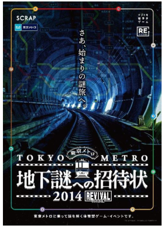 3年振りとなる今回は、過去6回の開催で述べ38万人以上が参加したナゾトキ街歩きゲーム「地下謎への招待状」の原点となる2014年復刻版として再演します。「謎」を一部リニューアルして、はじめて地下謎に挑戦される方はより楽しみやすく、再チャレンジされる方にもお楽しみいただけます。「地下謎への招待状2014REVIVAL」は、東京メトロの駅や東京という街全体を舞台に、専用24時間券と謎解きキットを使って、参加者自らがプレイヤーとなって街を歩き、東京や東京メトロに隠された謎を解き明かしながらゴールを目指す体験型ゲームです。