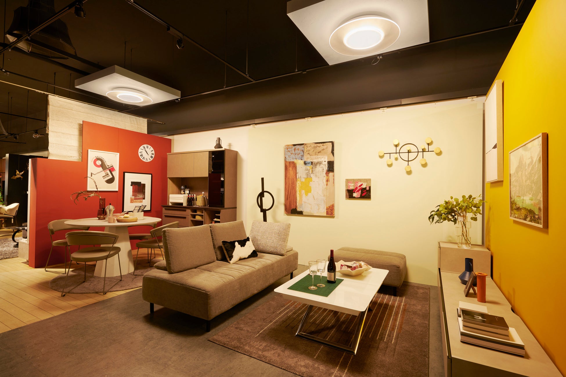 このたび、インテリアやあかりのスタイリング提案を行い、家具・インテリアなどの企画販売を行う「LIVING HOUSE.」の旗艦店である LIVING HOUSE. アーバンドックららぽーと豊洲店にて本パネルシリーズの展示を行っています。インテリアショップであかりを照らし分けすることで、実際の部屋のように、あかりがインテリアや暮らしを支えることを実感いただくことができます。ご自身でリモコンを操作し、朝起きたときはさわやかに、仕事が終わった時はくつろぎで、などシーンを想定しながら、照らし分け体験が可能です。