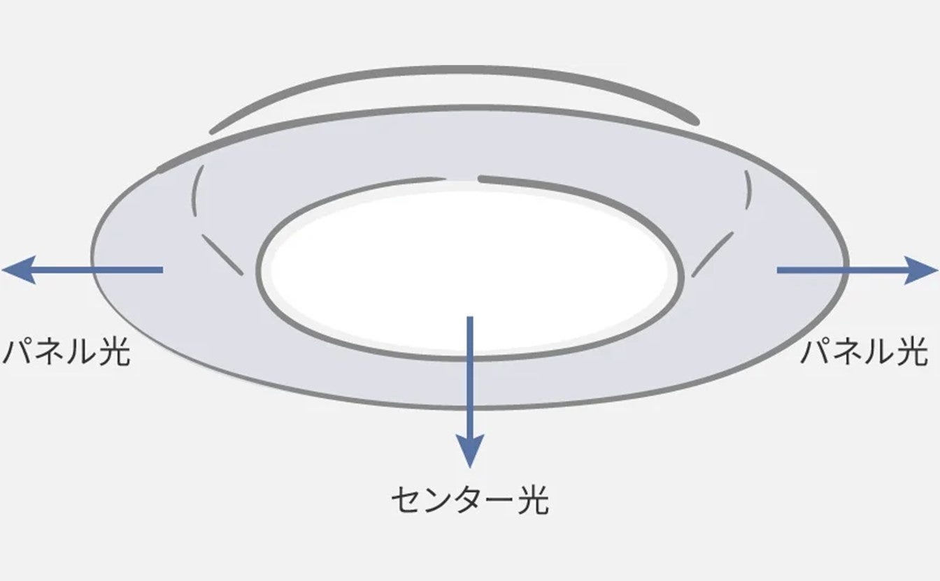 床面を照らすセンター光と、天井や壁を照らす間接照明のようなパネル光。