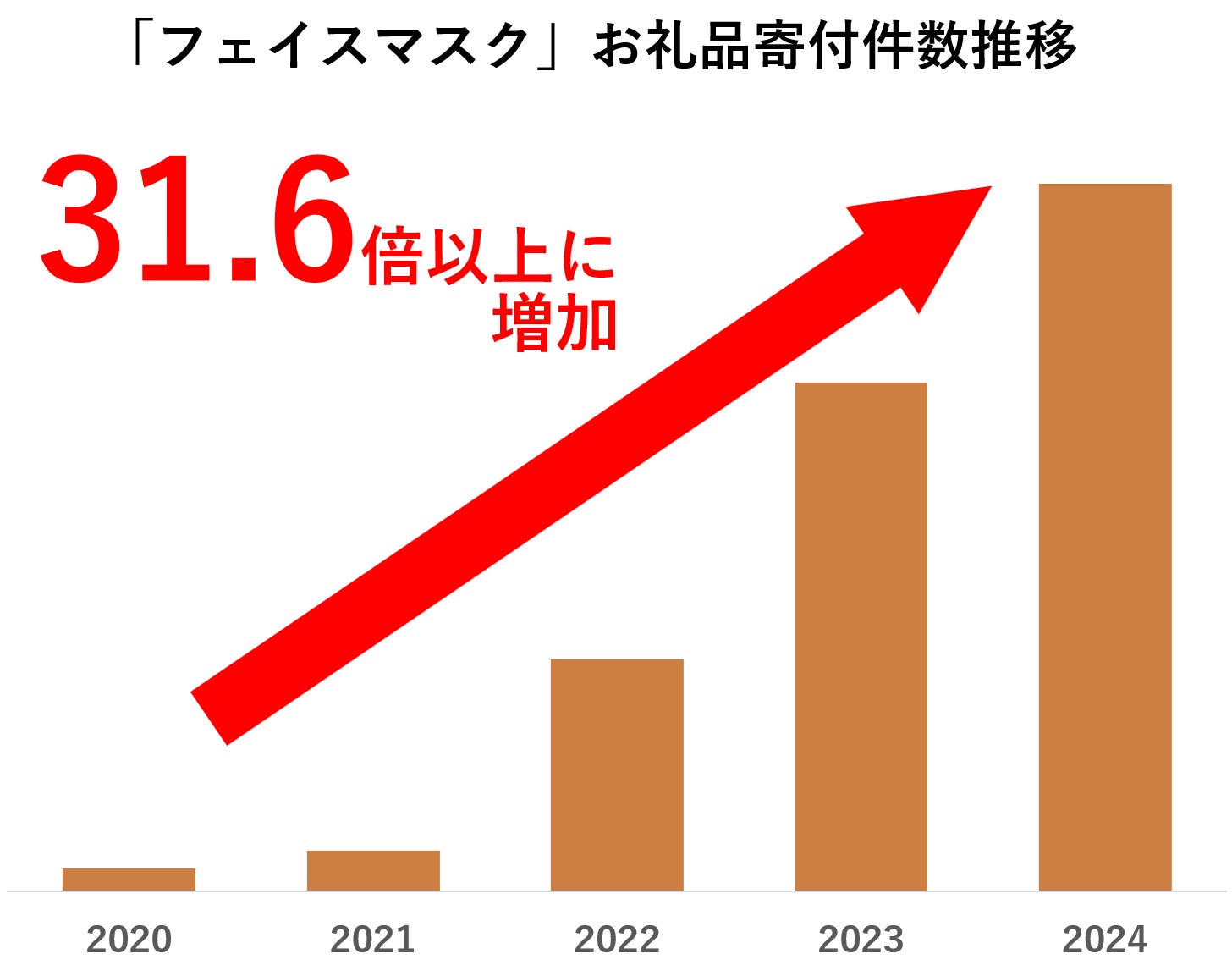 ※2 2024年1月1日~2024年12月31日と2020年1月1日~2020年12月31日の「美容」カテゴリ内「フェイスマスク」お礼品の寄付件数から算出