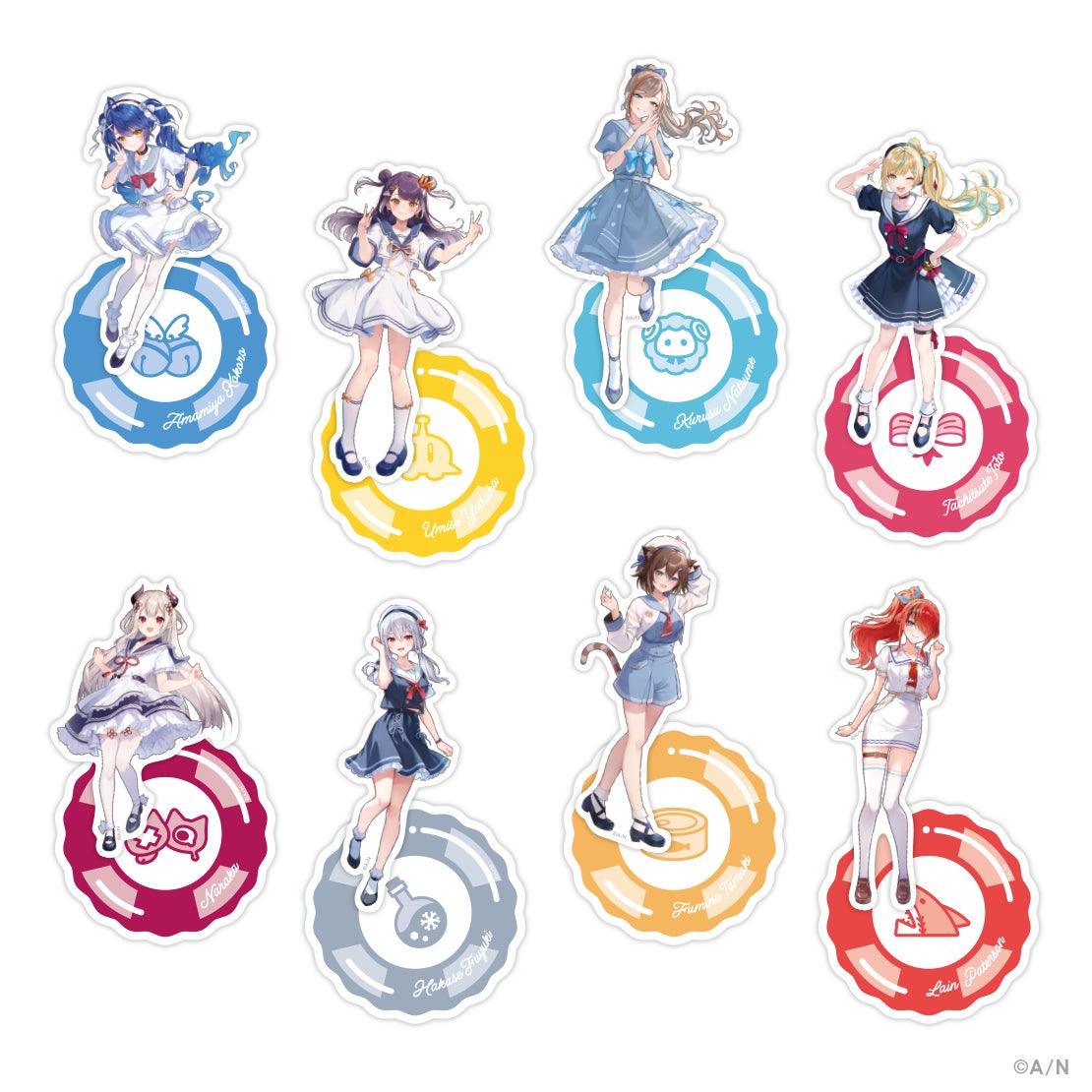 グッズラインナップは、撮りおろしビジュアルを使用したランダムポストカード、BIGアクリルスタンド、ステッカーセット、クリアファイル、マウスパッド。各ライバーのモチーフデザインを使用したアクリルキーホルダー、サコッシュを加えた計7種類!