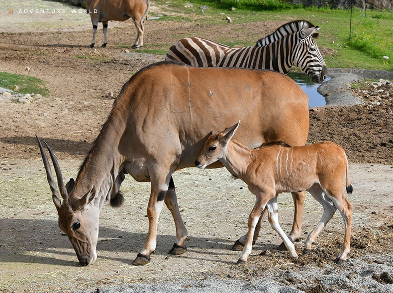 アドベンチャーワールド(和歌山県白浜町)で2025年4月30日に、8年ぶりにエランドの赤ちゃんが誕生しました。これまで、エランドの赤ちゃんは母親と限られたエリアで過ごしておりました。赤ちゃんの順調な成長に伴い、アミメキリンやシマウマが暮らしているサバンナエリアへとデビューし、2025年6月13日(金)より、新しい生活がスタートします。