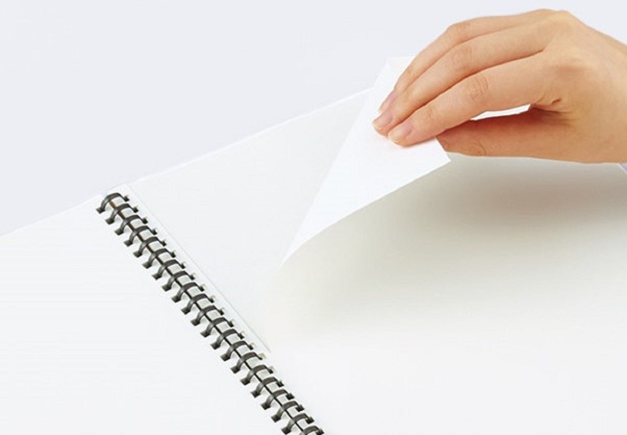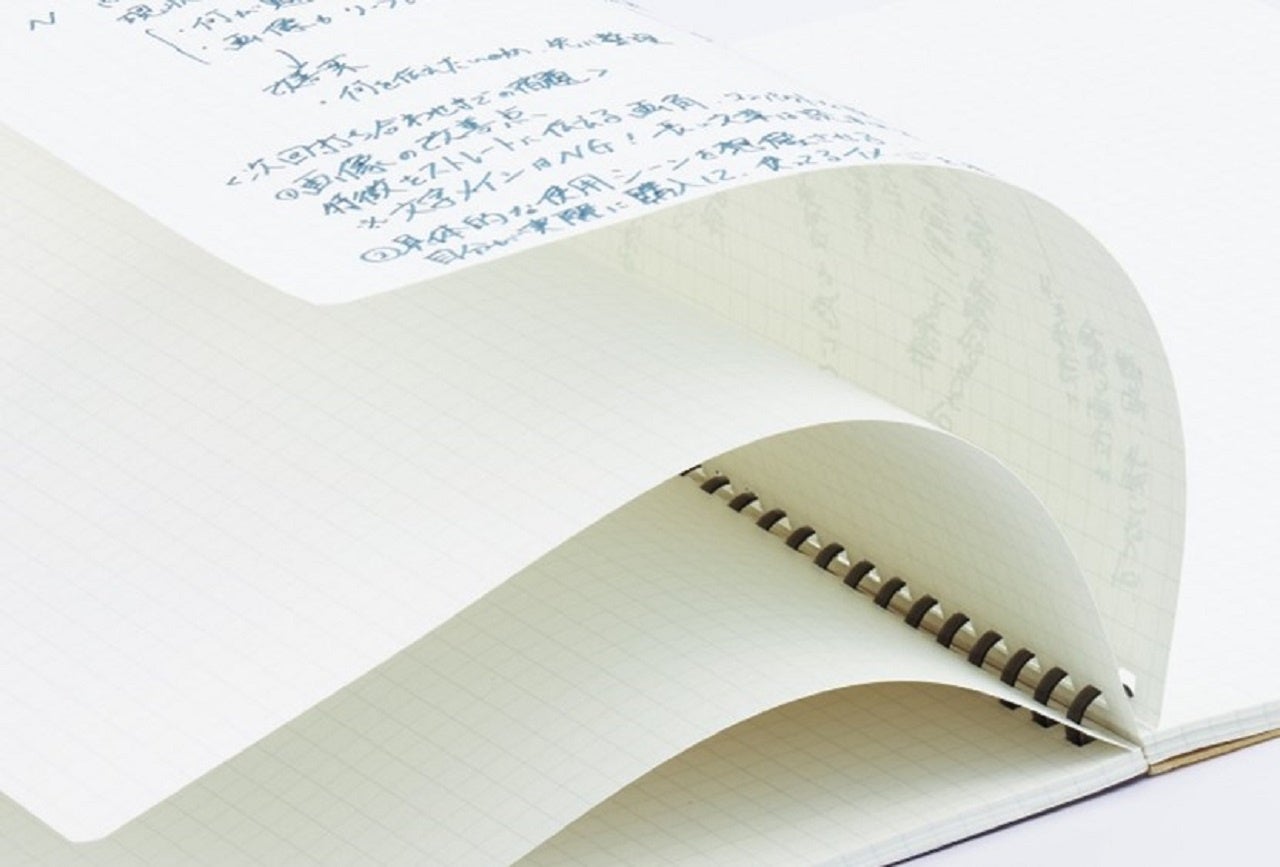今回発売のA4サイズは書き込みスペースが広いため、複雑な情報を整理したり、イラスト等を用いながらクリエイティブな発想を広々と書き出したりすることができます。やわらかリングは表紙を折り返した際に筆記面が浮きづらく、また手がリングに当たっても気になりにくいため、思考を妨げることなく快適に使用できます。罫線は、表やグラフの書き出しに便利な5mm方眼罫タイプと、罫線にとらわれずアイデアを書き出すのに最適な無地タイプの2種類をラインアップしました。自身のアイデアや思考を書き留めておきたい方におすすめの一冊です。