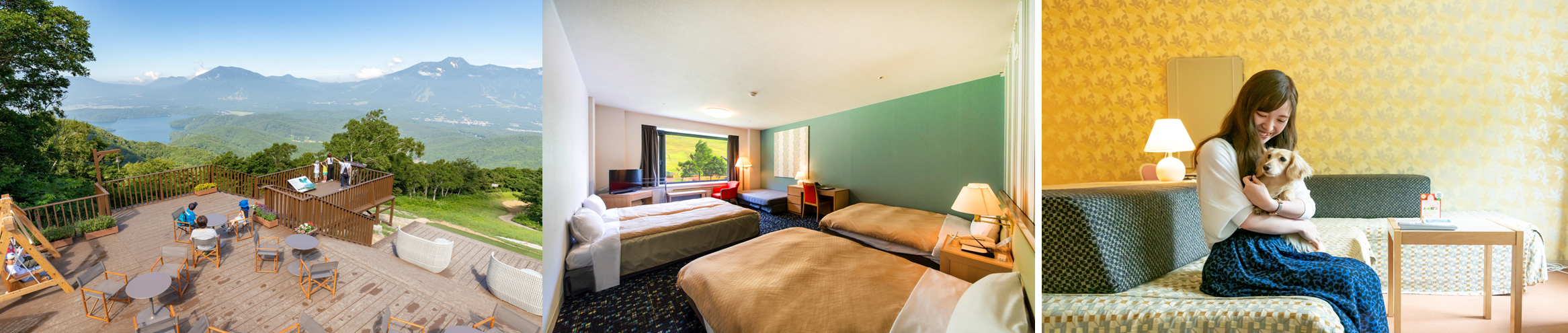 長野県北部の斑尾山にある高原リゾート「タングラム」。泊まる・遊ぶ・滑る、が一つになった滞在型リゾートです。ホテル客室は全室 40 ㎡以上でゆったりとお過ごしいただけます。洋室の他、和室、和洋室、80 ㎡の特別室、ペットと泊まれるペット対応ルームや自転車と泊まれる自転車ルームなど、様々なルームタイプでお客様のニーズにお応えいたします。温泉大浴場には露天風呂やサウナを完備しており、1 日の疲れをゆっくり癒していただけます。