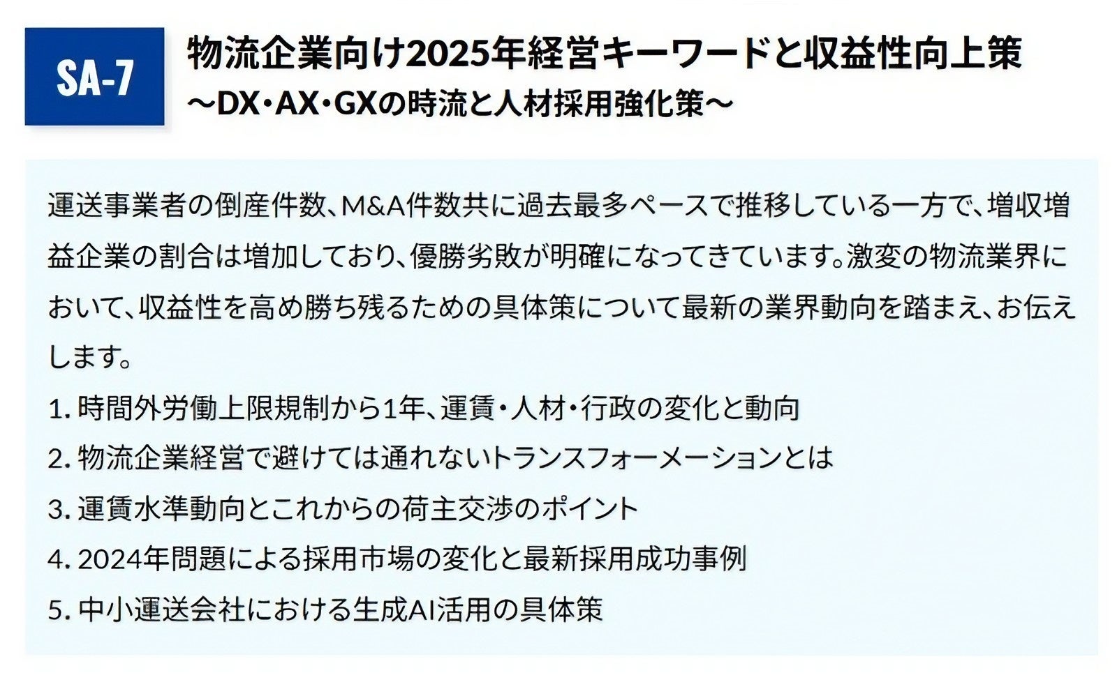 物流企業向け2025年経営キーワードと収益性向上策 ~DX・AX・GXの時流と人材採用強化策~ |