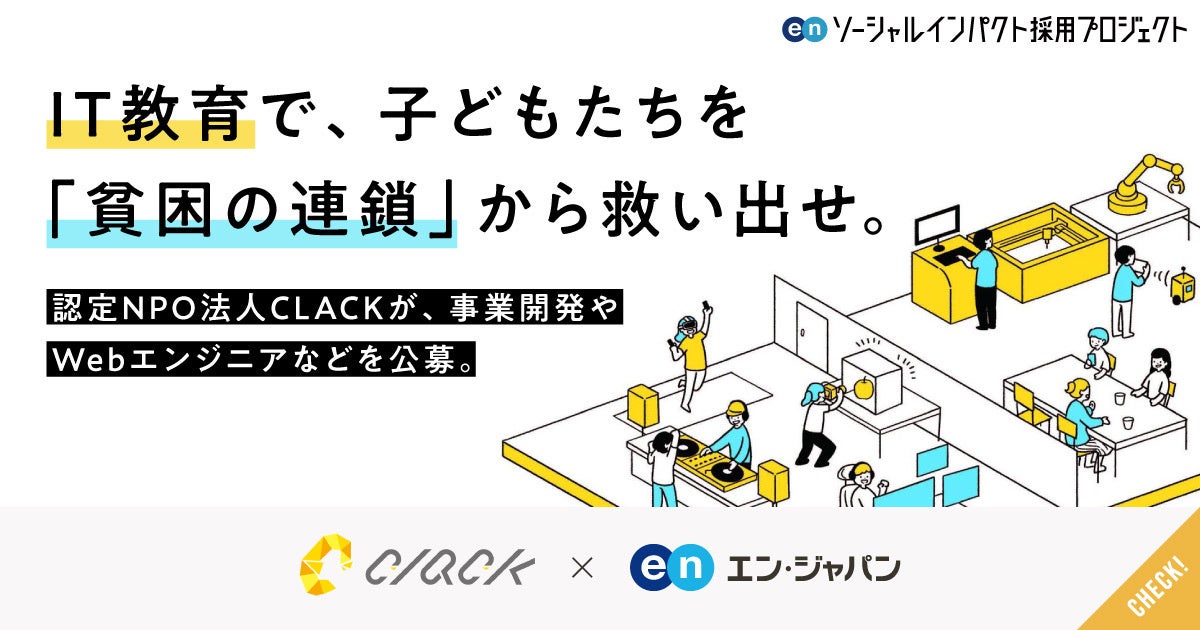 IT学習支援で高校生の貧困課題に挑む『認定NPO法人CLACK』 エン・ジャパンで、事業拡大に向けた中核ポジションを公募!