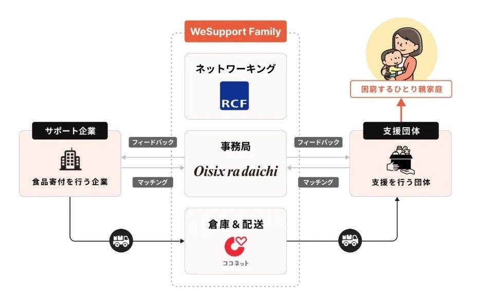 ■「WeSupport Family」の仕組み…67社の寄付で2万8千世帯に定期的に食品をお届け