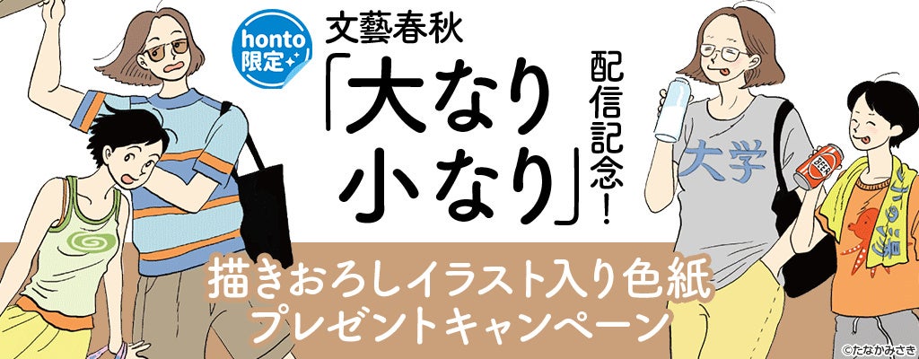 大日本印刷株式会社(DNP)が株式会社丸善ジュンク堂書店、株式会社文教堂及び株式会社トゥ・ディファクトと共同で運営するハイブリッド型総合書店「honto(https://honto.jp/)」は、イラストレーターであるたなかみさきさんの初の漫画単行本『大なり小なり』(文藝春秋刊)の配信を記念して、2025年2月6日(木)から2月19日(水)まで著者の描きおろしイラスト入り色紙が当たるプレゼントキャンペーンを開催します。