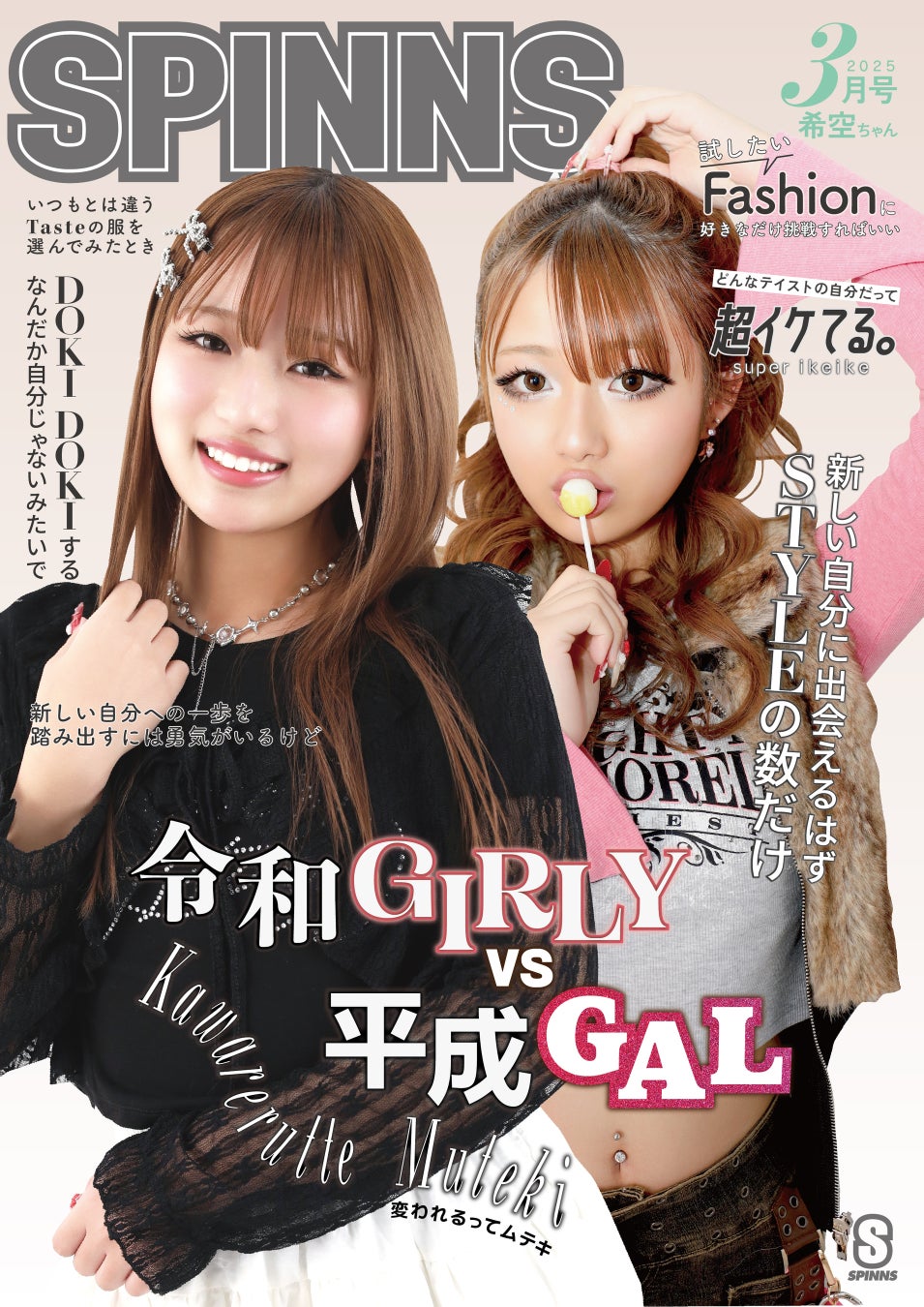さらにその他にも、ガーリースタイルとギャルスタイルの希空のビジュアルがSPINNSの店舗にて掲載!