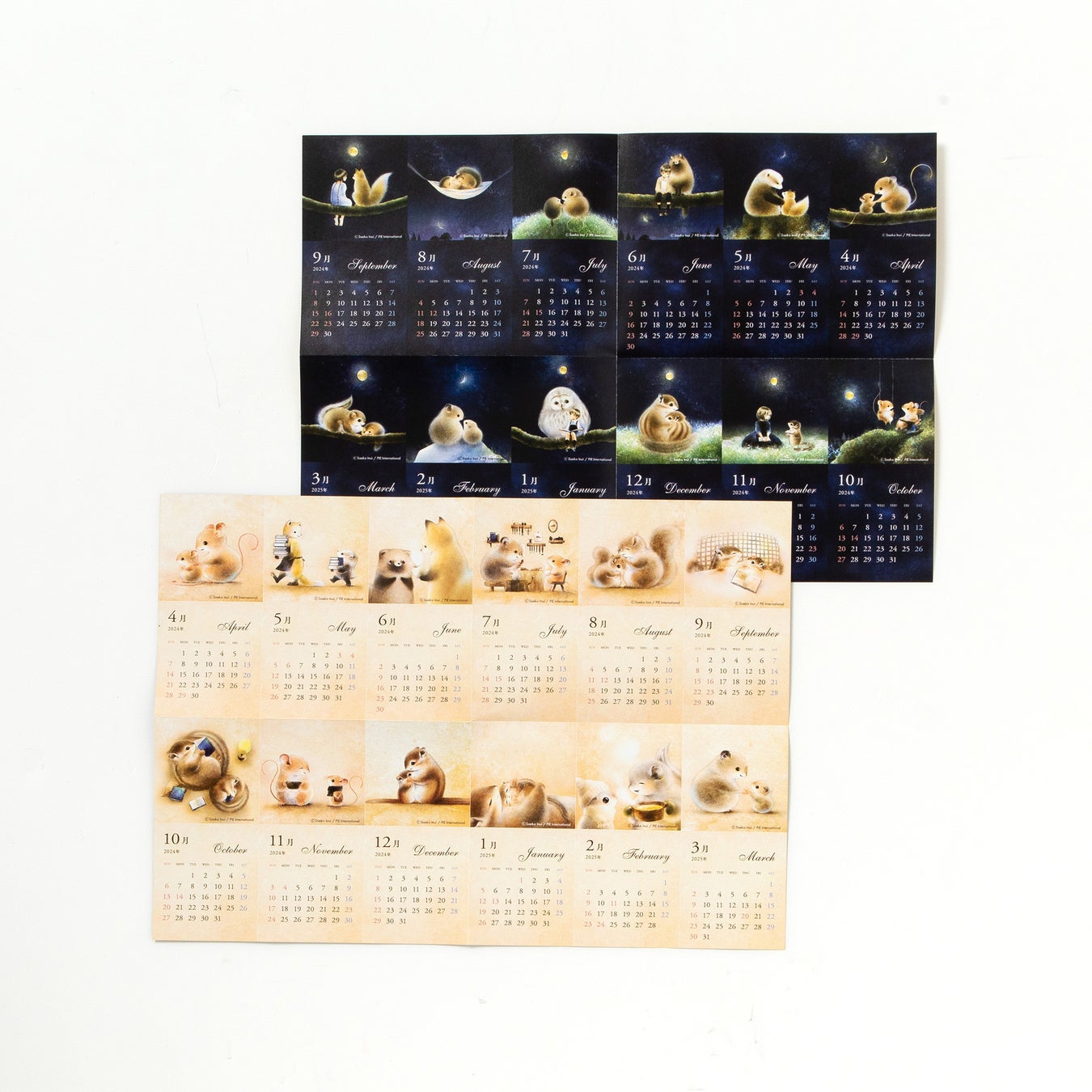 2024年4月が月初となるカレンダーです。『きみのことが だいすき』と『きみのそばに いるよ』のイラストを両面にあしらった仕様で、切り離してスマホケースに挟み込めるサイズです。