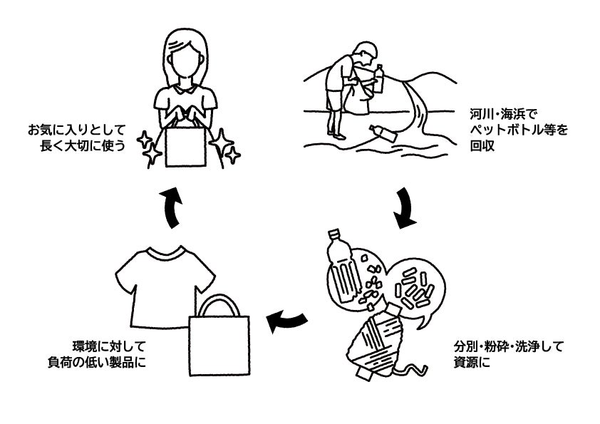 ライフスタイル商社の豊島株式会社が展開する、漂着ペットボトル等を繊維(糸)に生まれ変わらせるプロジェクト「UpDRIFT(アップドリフト)」によるクリーンアップ活動の名称です。海・川・森に廃棄され散乱するペットボトル等を、地方自治体や企業と連携して回収し、繊維の原料にしています。(URL:https://updrift.jp/)